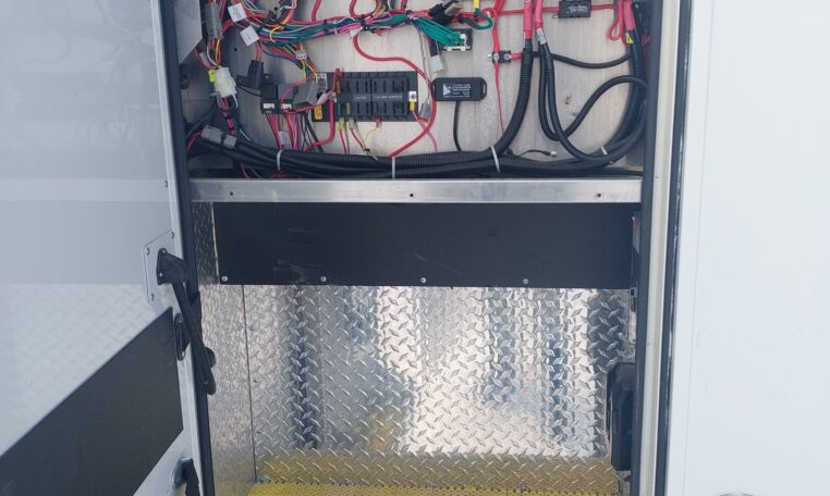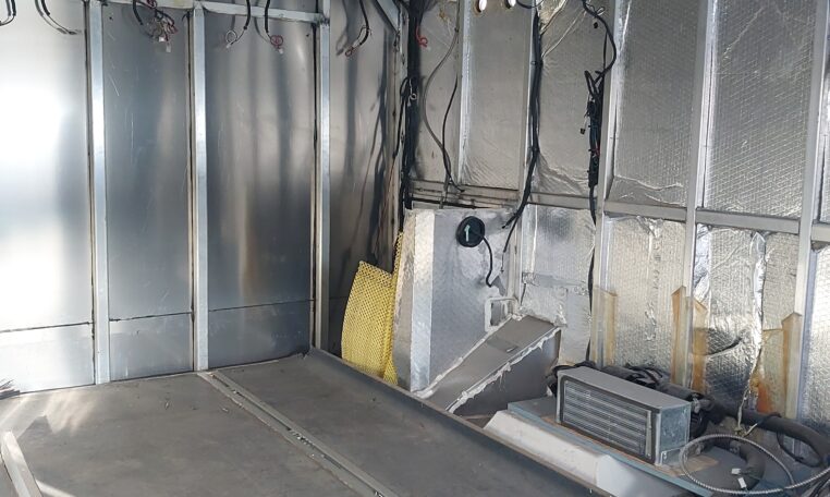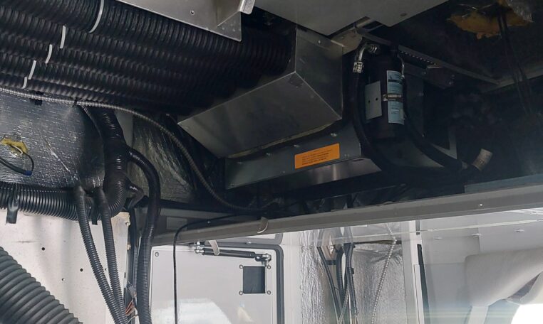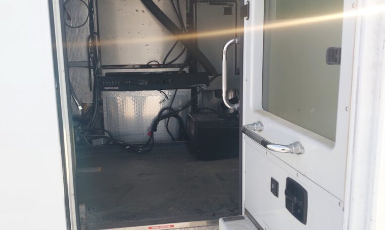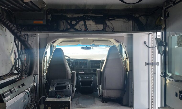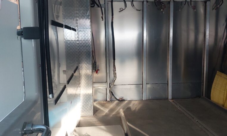 The cabinets on the driver’s side have been removed, but the existing ambulance heat, air condition and wiring are still there.