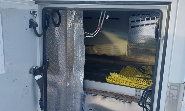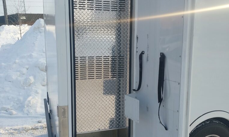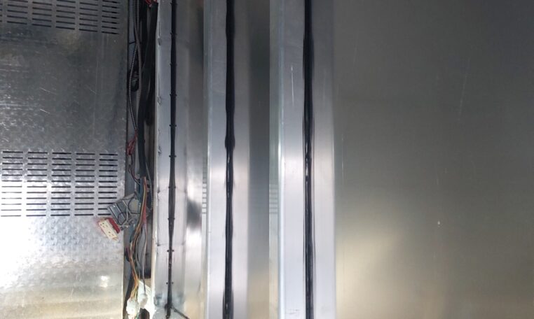 The rear doors were damaged from an accident, so we had a welder replace the rear panel with the proper type and thickness of aluminum.